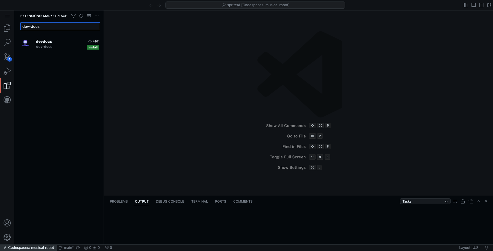 Search for Dev-Docs in the extensions tab and install it.